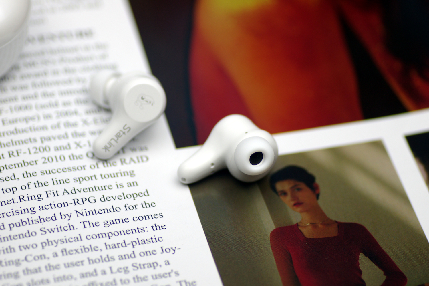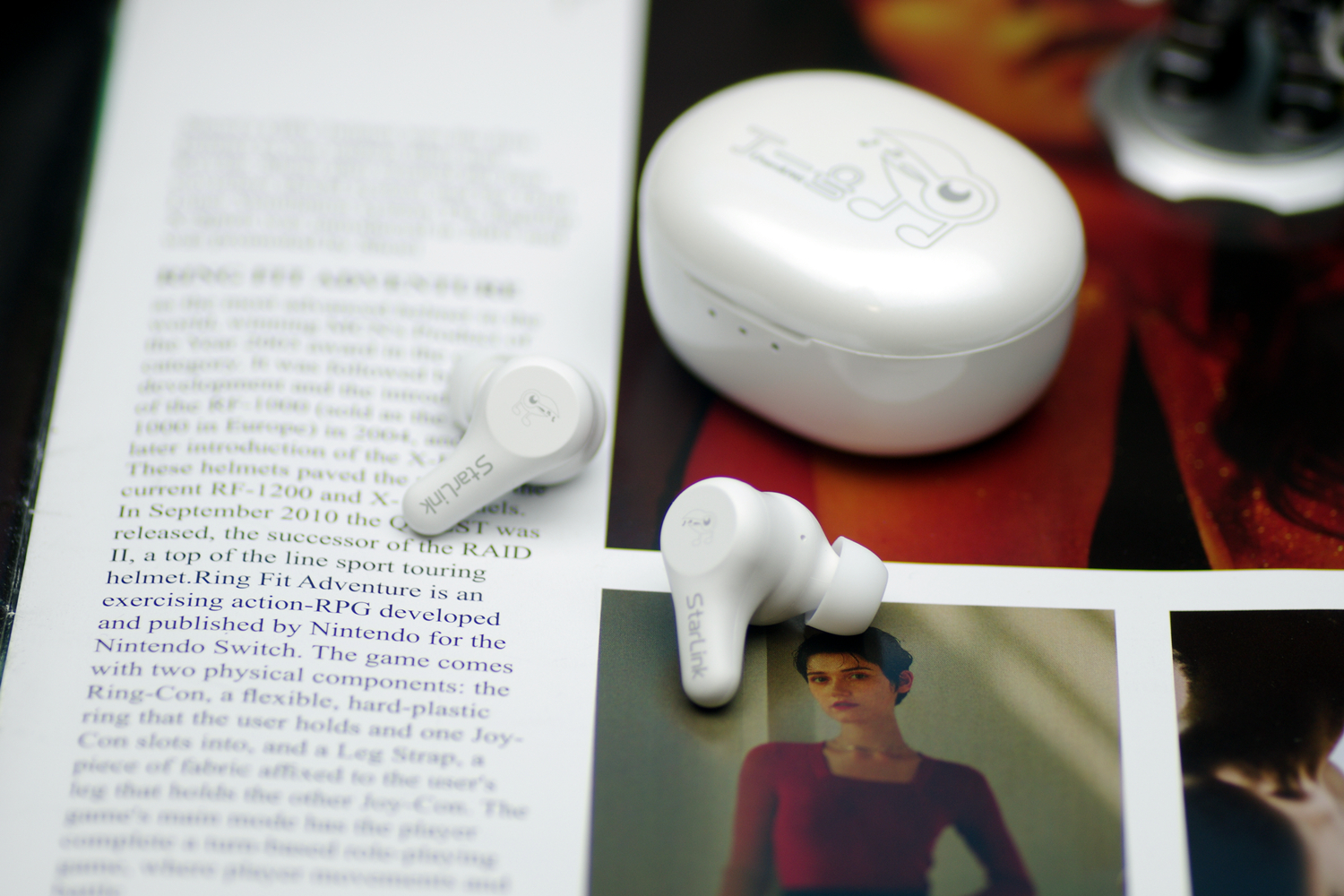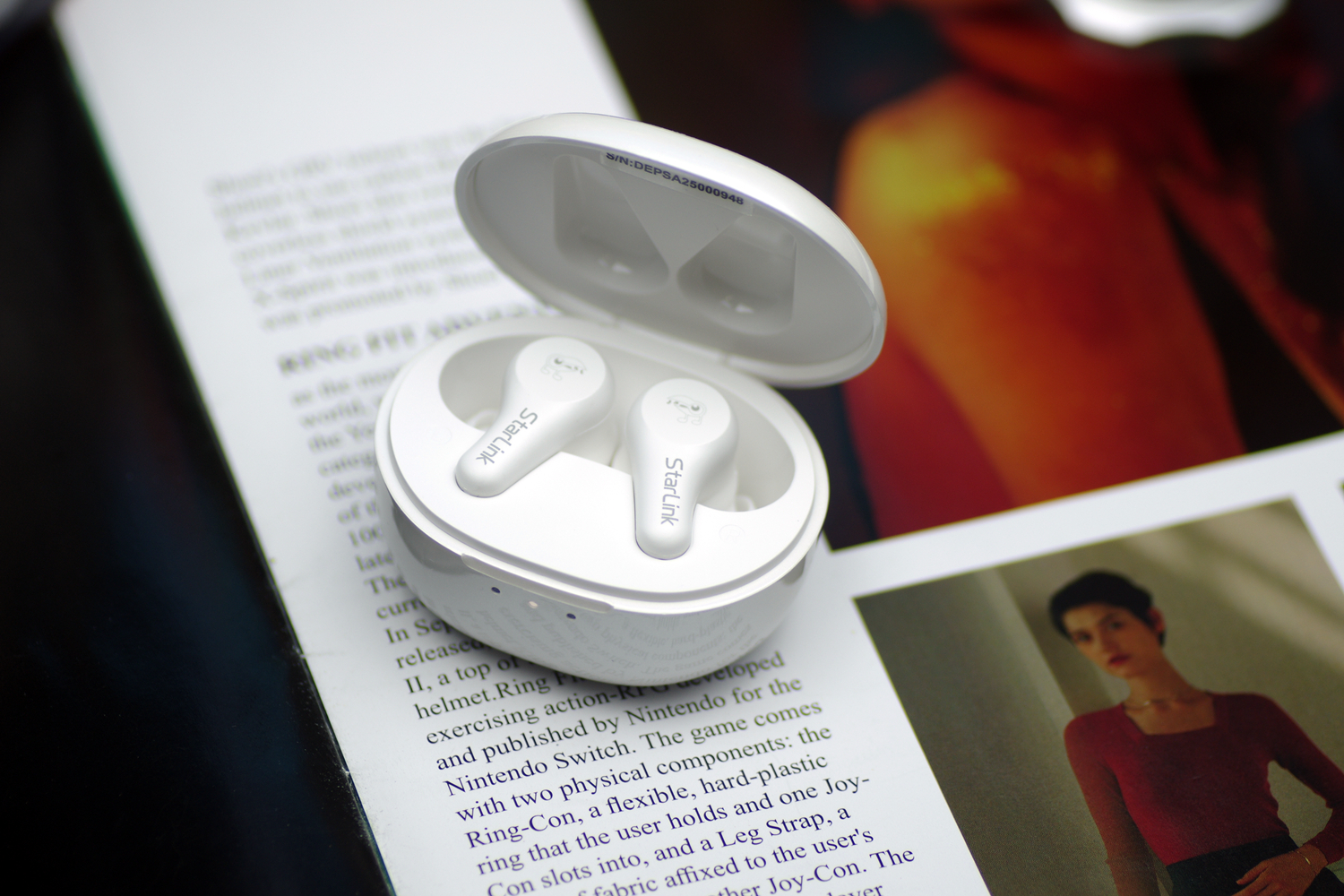 打开仓盖就能看到耳返本体,摆放很紧凑,两个耳柄错开一定角度,取拿很方便。