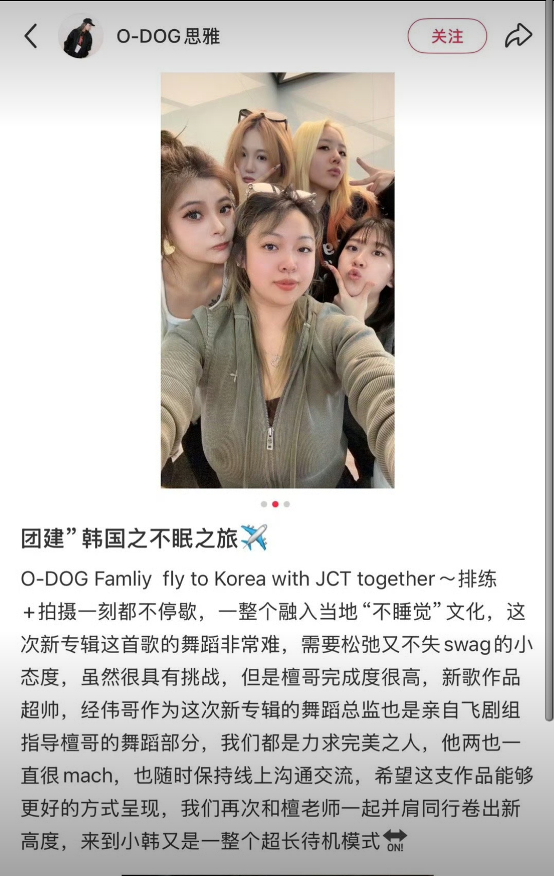这次带了整个O-DOG舞团去韩国练舞,这得多少钱啊?我还数了一下,光那一张图里就有几十个人了!几十个人的机酒费用,估计成本不少!