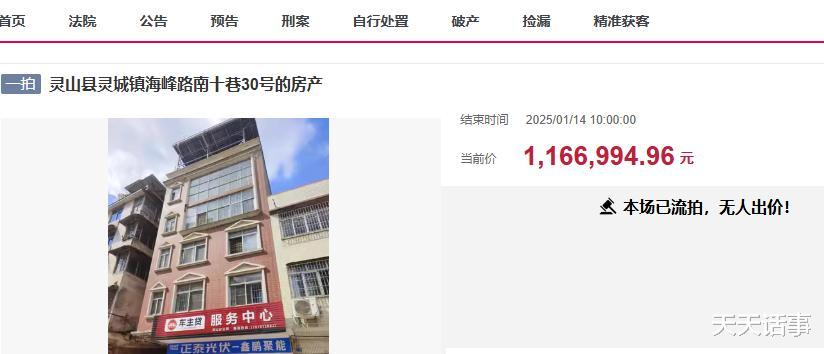 第一次拍卖成交悔拍后,在今年1月份,这栋房子重新拍卖,起拍价还是116.6994万元,但是这次没有人报名竞拍了,最后流拍告终。
