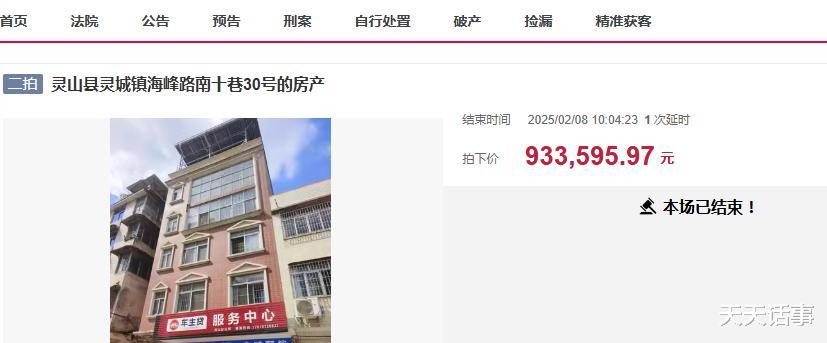 去年的时候,在钦州市司法拍卖市场上,一栋位于灵山县的私人楼被拍卖,最终拍出了高价,但是不知道是不是房托最后拍下的房子,竞得者最会悔拍了,然后房子只能重新进行拍卖。2月8日,钦州灵山县这栋遭悔拍的房子是迎来了第二次拍卖的最后一天竞拍。这栋房子位于灵山县灵城镇海峰路南十巷30号,是一栋5层的自建房,建筑面积496.94㎡、房屋占地面积66.83㎡。房子属于临街房产,具有一定的商业价值,而且房子也是比较方正,整体看上去还是比较新。