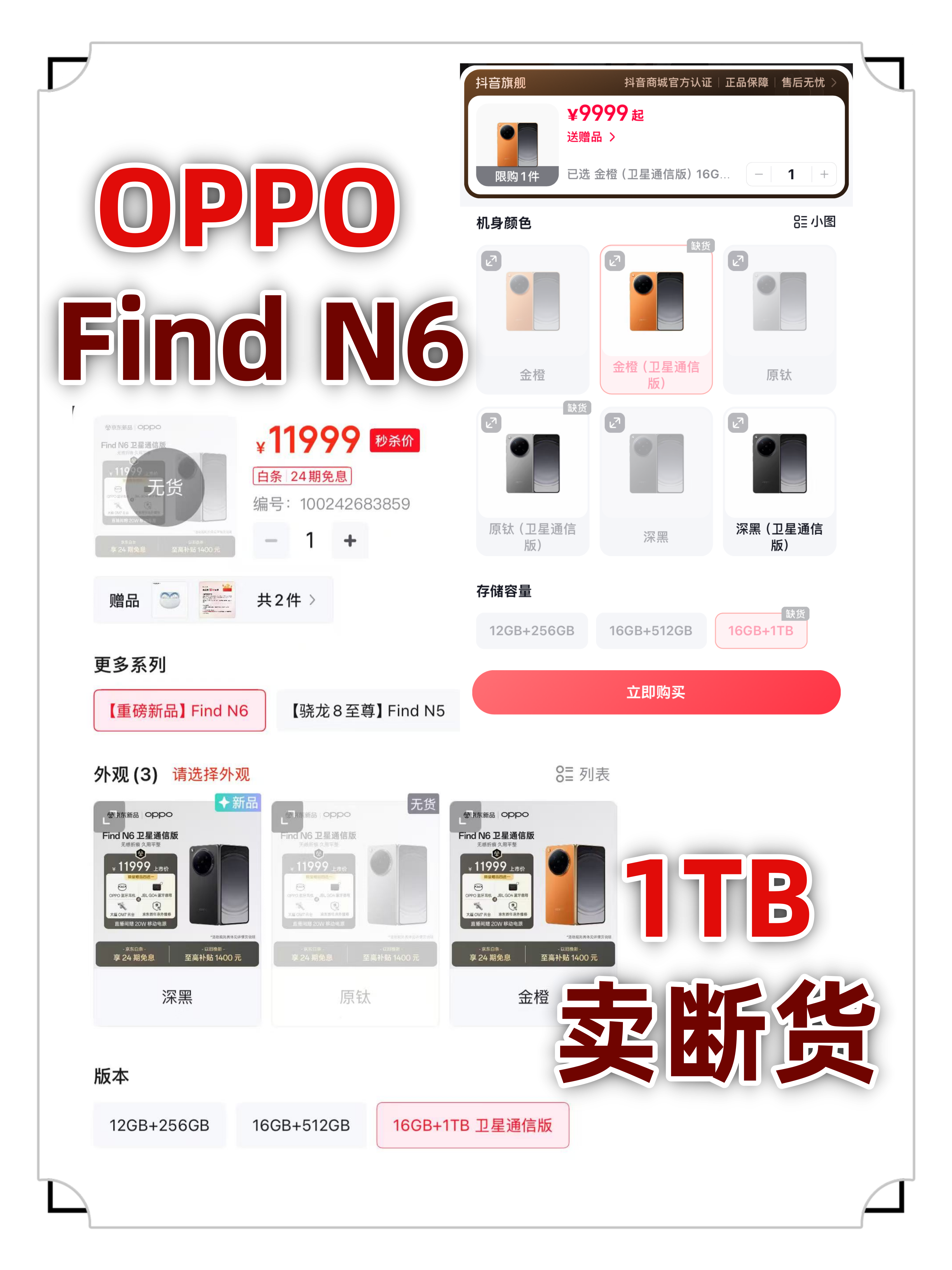 OPPO Find N6发布没多久1TB版本就卖断货了