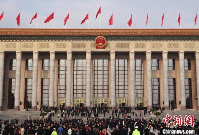 3月5日,十四届全国人大三次会议开幕会在北京人民大会堂举行。开幕会前,全国人大代表走向人民大会堂。中新社记者 杨可佳 摄