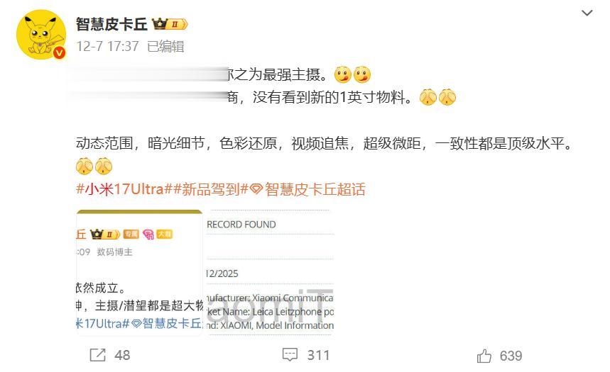 小米17 ultra最大的特点还是影像,这有可能会成为同档最强影像,据爆料会采用一颗豪威一英寸超大底主摄,进光量大幅提升,能提高夜景、逆光场景的拍照体验,还有16EV动态范围增强明暗细节感。