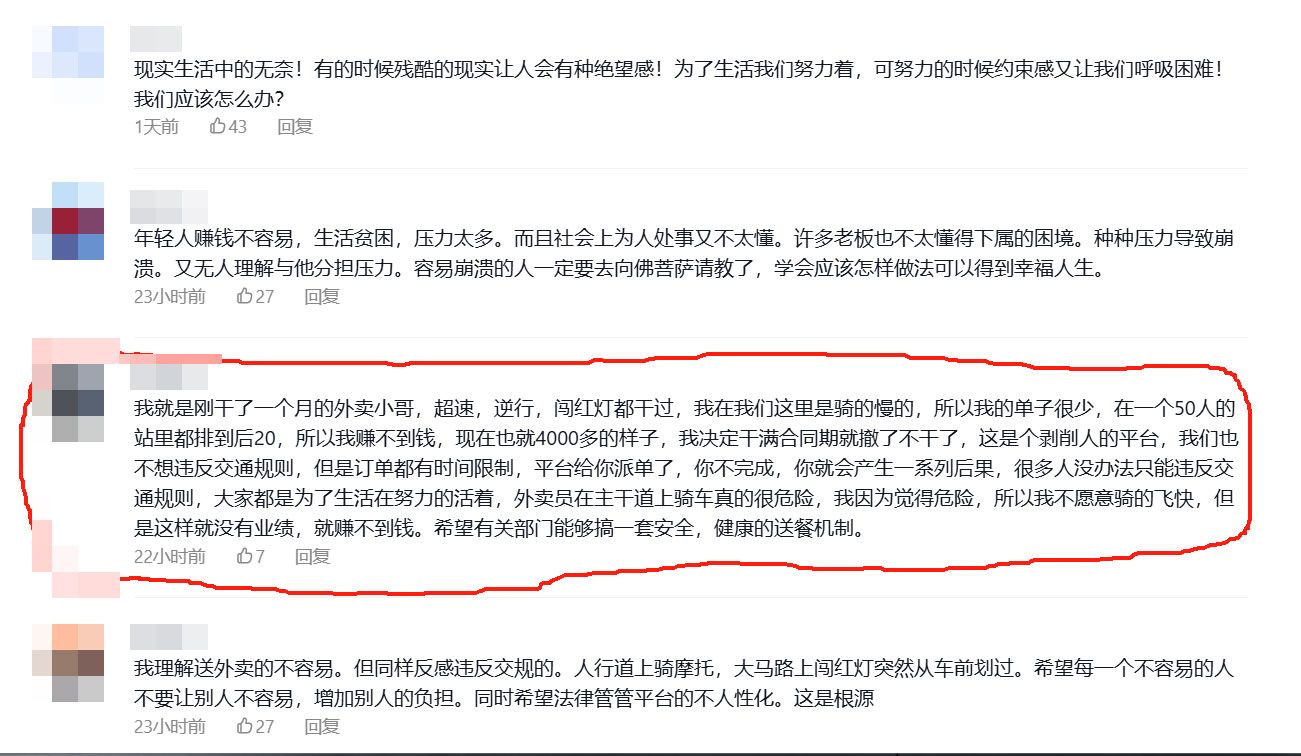 很多人肯定好奇的是,到底是什么让这位外卖小哥如此歇斯底里?后来我在评论区找到了答案。