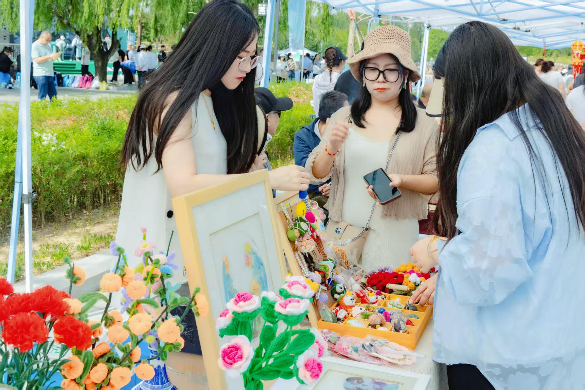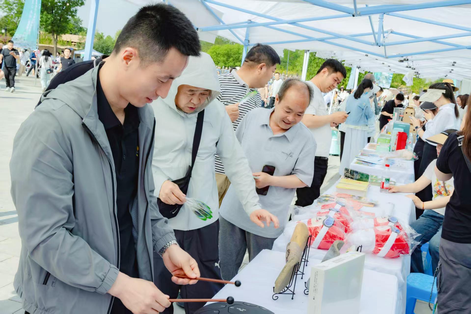 在“三秦四季 清凉铜川”文旅展销区里,来自全市各区县的非遗传承人、文创企业带来了耀州瓷、养生中药枕、面花、扎染等地方特色文创精品。金属錾雕、微雕大师的展台前围满了好奇的观众;面花、扎染等传统技艺也吸引众多家庭参与互动。