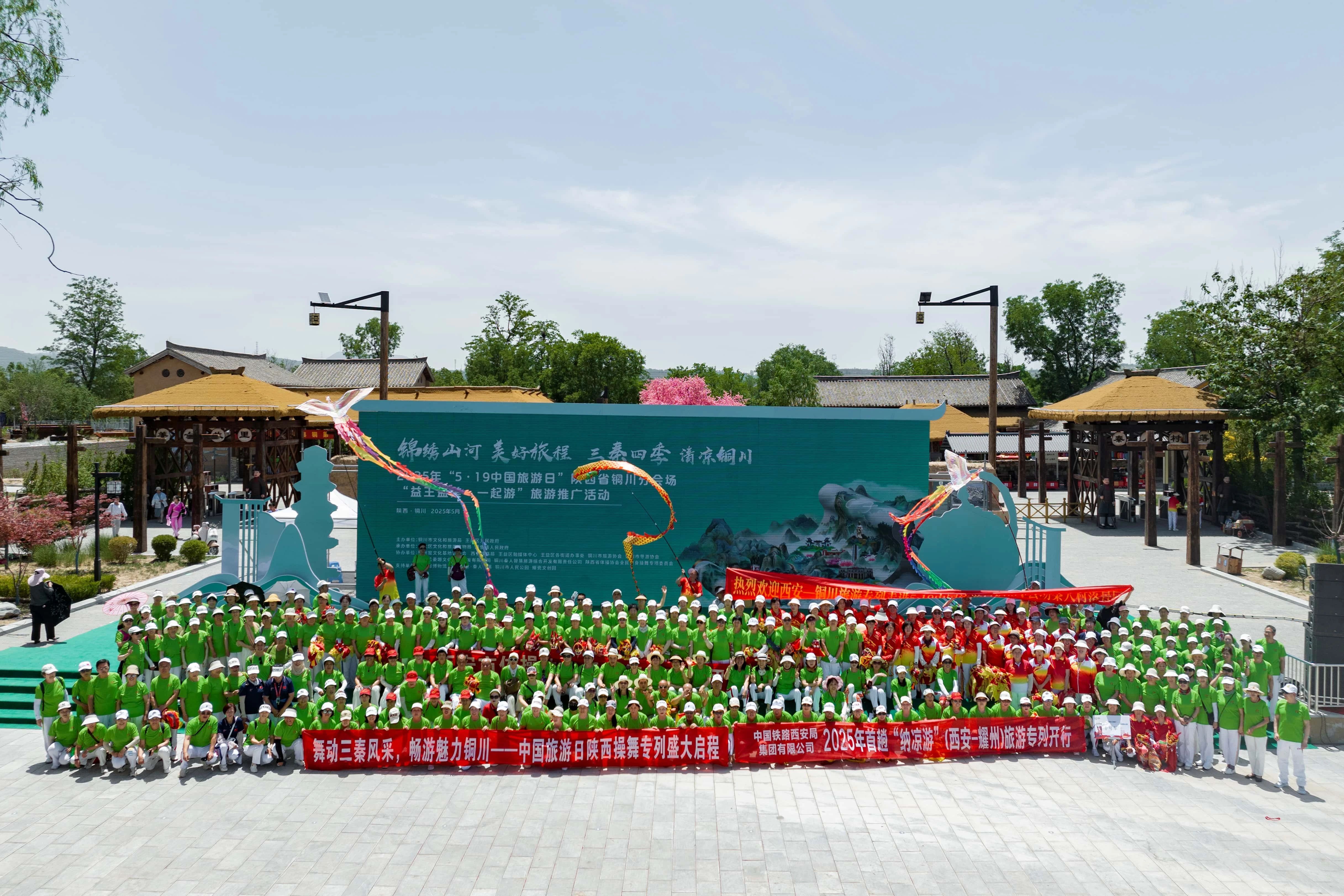 本次活动还邀请了陕西省体操协会全民健身操舞专委会近千名操舞爱好者现场表演了精彩的操舞和舞龙展演。今年以来,铜川市文化和旅游局积极探索,大力创新,联合体操协会、铁路交通,通过资源整合,让交通+体育+旅游融合赋能,激活银发旅游市场,为铜川文旅发展注入新动能。