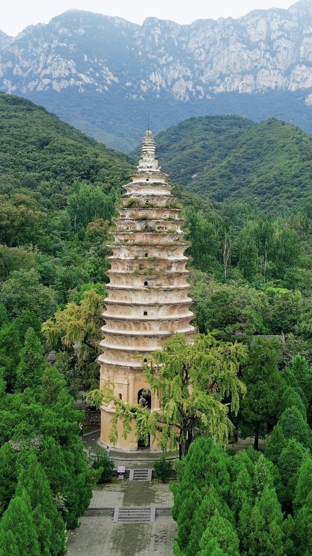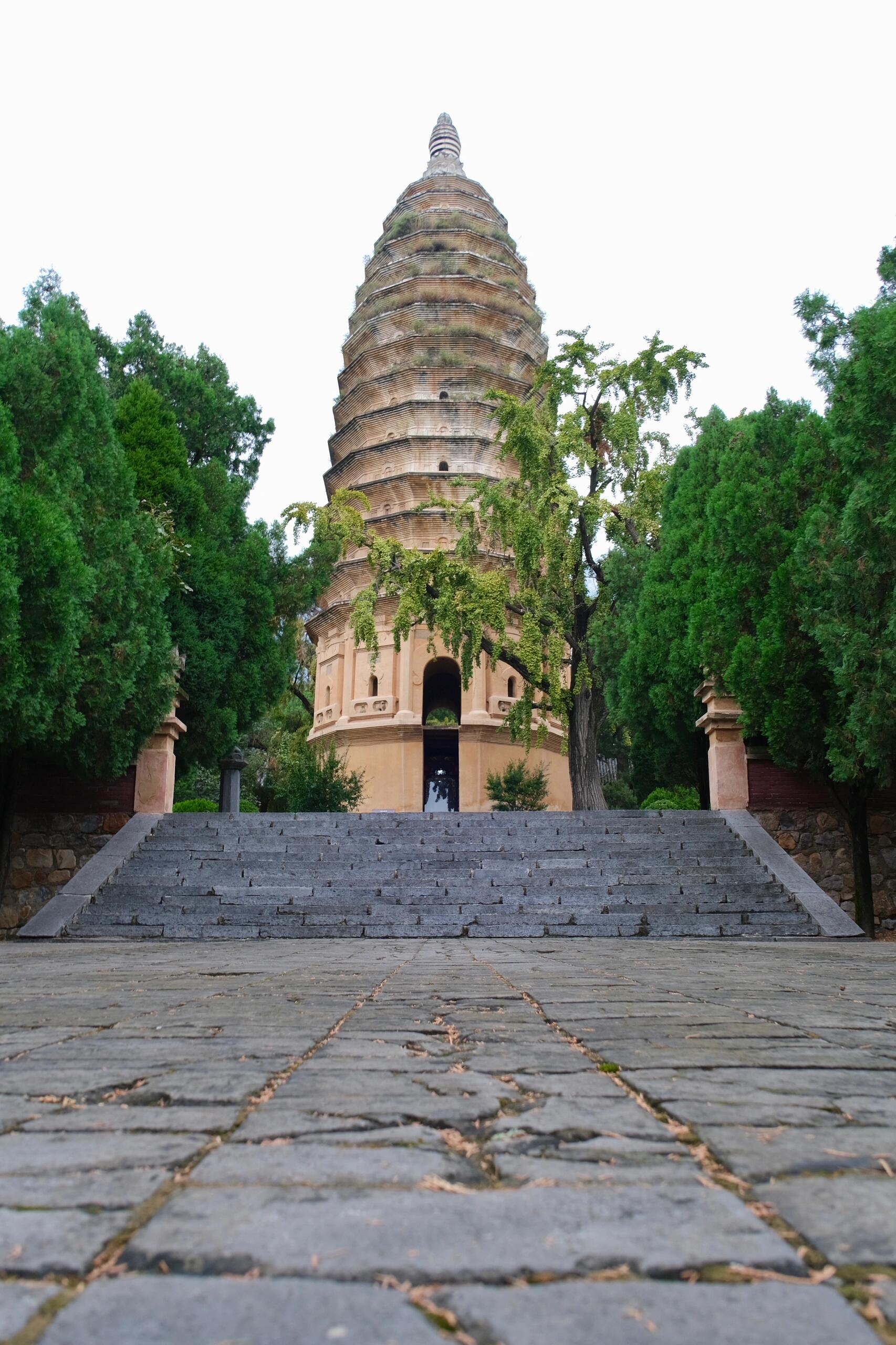 第一次仰头看它的时候,你会忍不住数它的层数,一层,两层,一直数到十五层。这是十五层密檐式的佛塔,可它最特别的,从来不是层数。中国现存的古塔成千上万,方形的、八角形的比比皆是,唯独它,是十二边形的。这个在建筑史上独一无二的形制,从基台开始,就沿着十二边的轮廓向上延伸,没有一丝偏差。梁思成和刘敦桢先生当年考察到这里,曾用“如异军突起”来形容它的出现,这话一点不夸张。在那个砖构建筑还未成为主流的年代,这样的设计,简直是石破天惊。