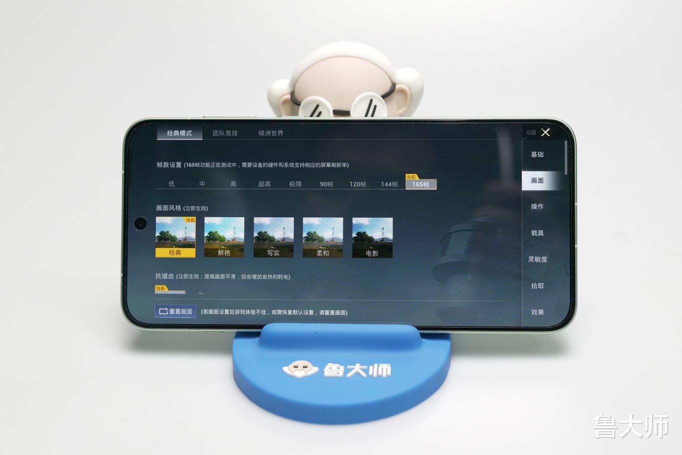 比常规120Hz屏每秒多显示45帧画面,这在《和平精英》、《三角洲行动》等FPS手游里非常吃香,显示画面多,你就更容易提前发现敌人;响应时间快,你也更容易比敌人开枪快。而鲁Sir恰好又是帧率敏感人群,体验几把165Hz游戏后,再回到90Hz,已经开始觉得90Hz一卡一卡的。。。