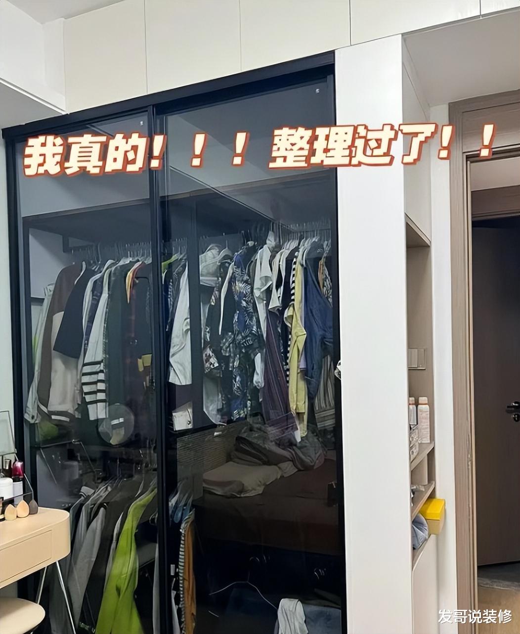1、玻璃柜门就是“照妖镜”听我一句劝,如果你没有收纳师级别的整理能力,卧室的衣柜就千万不要做玻璃门!