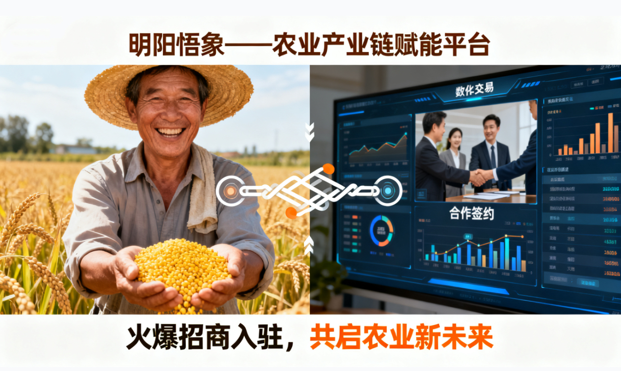 在农业产业数字化浪潮下,传统商家正面临渠道单一、客源分散、资源脱节的痛点。明阳悟象 —— 聚焦农业垂直细分领域的产业资源整合平台,以 “链接上下游、赋能全链路” 为核心,打通种植端、加工端、流通端、销售端的资源壁垒,现火爆招商入驻,助力农业商家解锁获客新路径,抢占产业升级红利。