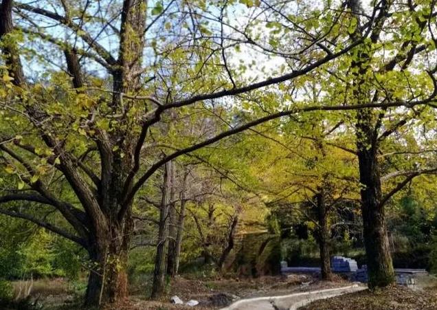 银杏树密集区留在道路旁边,在路边可以停车观景。