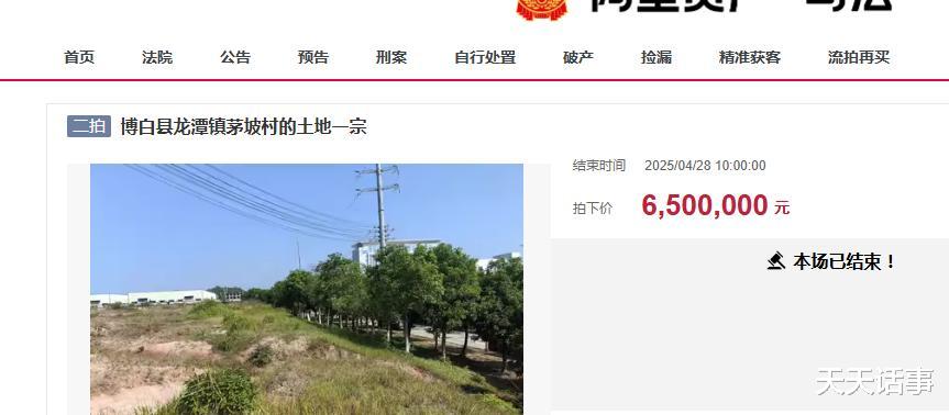 值得注意的是,也是在同一天,广西玉林龙潭创兴进口再生资源加工园区有限公司在博白县龙潭镇茅坡村还有另外一宗土地被拍卖,该土地现在没有开发,部分被当地村民哪里种种桉树以及还有部分当地村民房屋没有拆。土地面积为:59337.35平方米,88.96亩,最终也是以起拍价650万元就成交,成交单价7.3066万元/亩,这个单价只比土地征收价格高一点点。