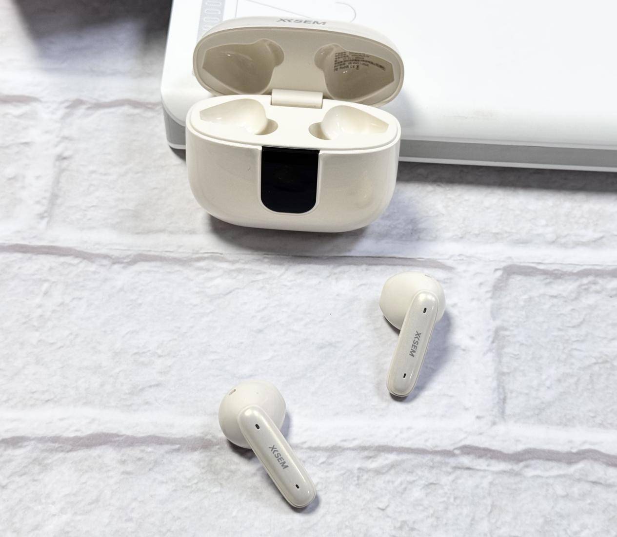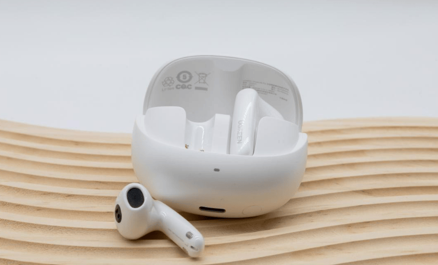 这款耳机的充电盒采用圆润设计,和市面上主流造型相似,材质为ABS塑料,手感比较细腻,握在手里不滑不磕。耳机本体单只约重 4g,佩戴贴合度不错,长时间使用也不会觉得压耳,不过做剧烈运动时容易有轻微松动,不太适合高强度锻炼佩戴。