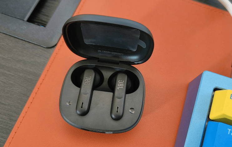 这款耳机单只重量约 3.8 克,整体佩戴轻盈,适合长时间通勤或办公使用,基本不会有压迫感。不过因为本身比较轻巧,佩戴的稳定性一般,跑步或剧烈运动时可能会有松动。耳机外壳是磨砂材质,手感细腻,外观简约,中间有 JBL 标志,辨识度还不错。