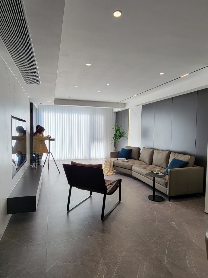 去掉茶几后,客厅中央区域得以释放,整个空间显得更加开阔通透。