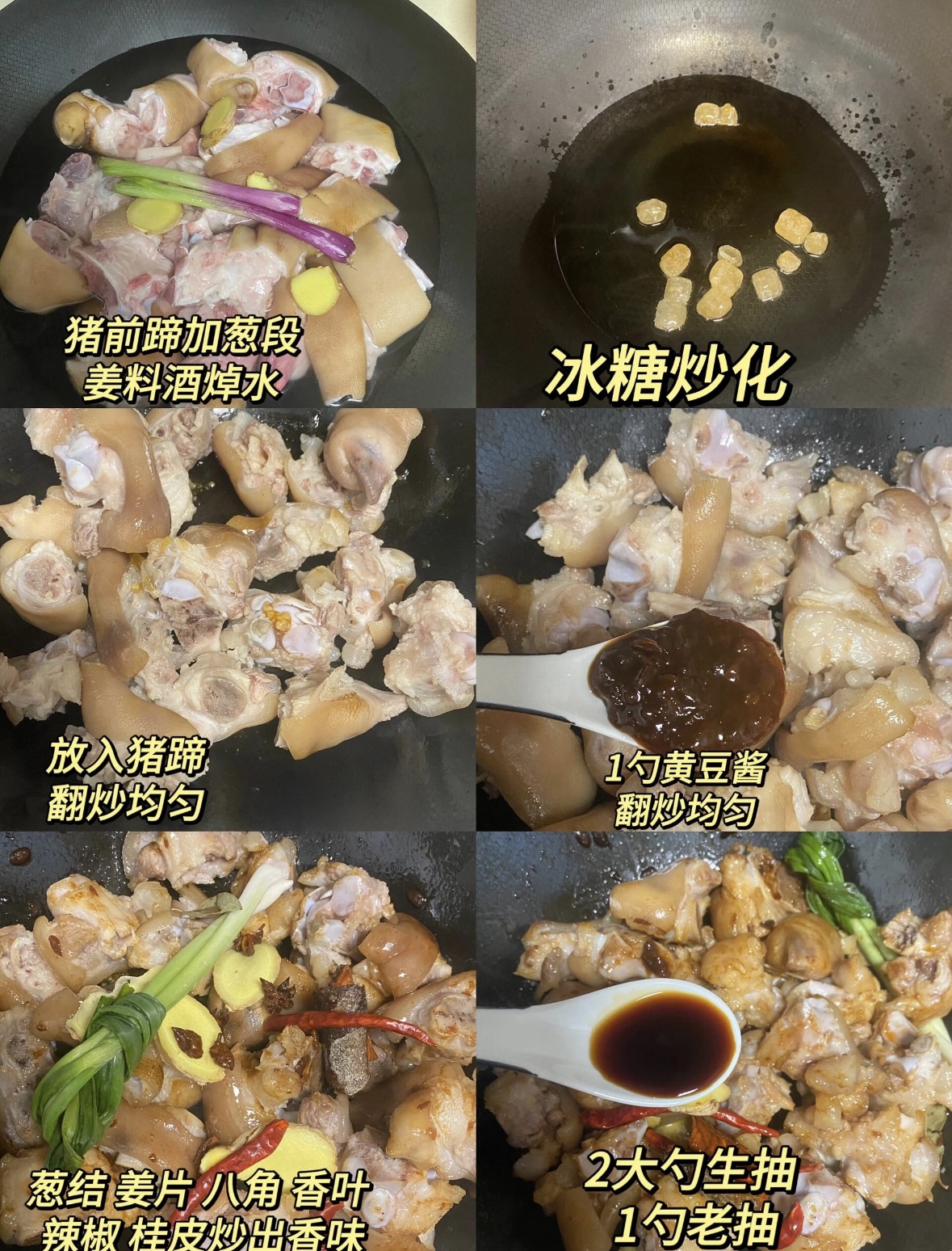 炒糖色是灵魂中的灵魂。铁锅烧到微微冒烟,倒入一点点油,再撒一把冰糖,火调到最小,铲子顺时针画圈。糖粒先从“咔啦咔啦”变成“沙沙沙”,再慢慢化成琥珀色小泡,像夕阳下的啤酒沫。我爸说:“颜色一到位,立刻倒猪蹄,晚一秒就苦成中药。”只听“呲啦”一声巨响,猪蹄滚进糖海,穿上亮晶晶的焦糖外套,1勺黄豆酱紧随其后,酱香、肉香、糖香三合一,厨房瞬间升仙。我站在旁边咽口水,我爸用胳膊肘把我往外推:“别挡光,糖色要拍照一样,得找准角度。”