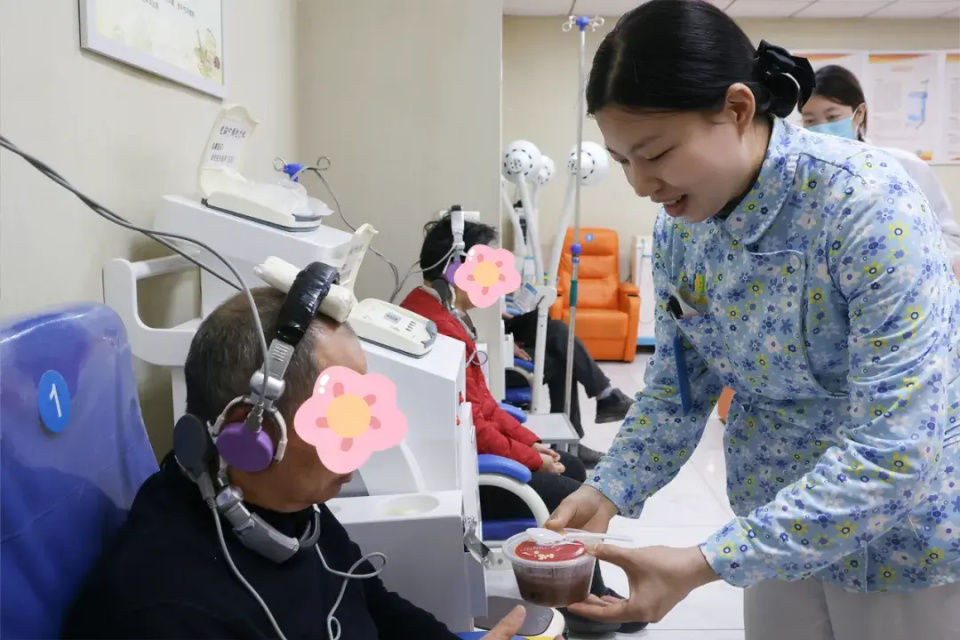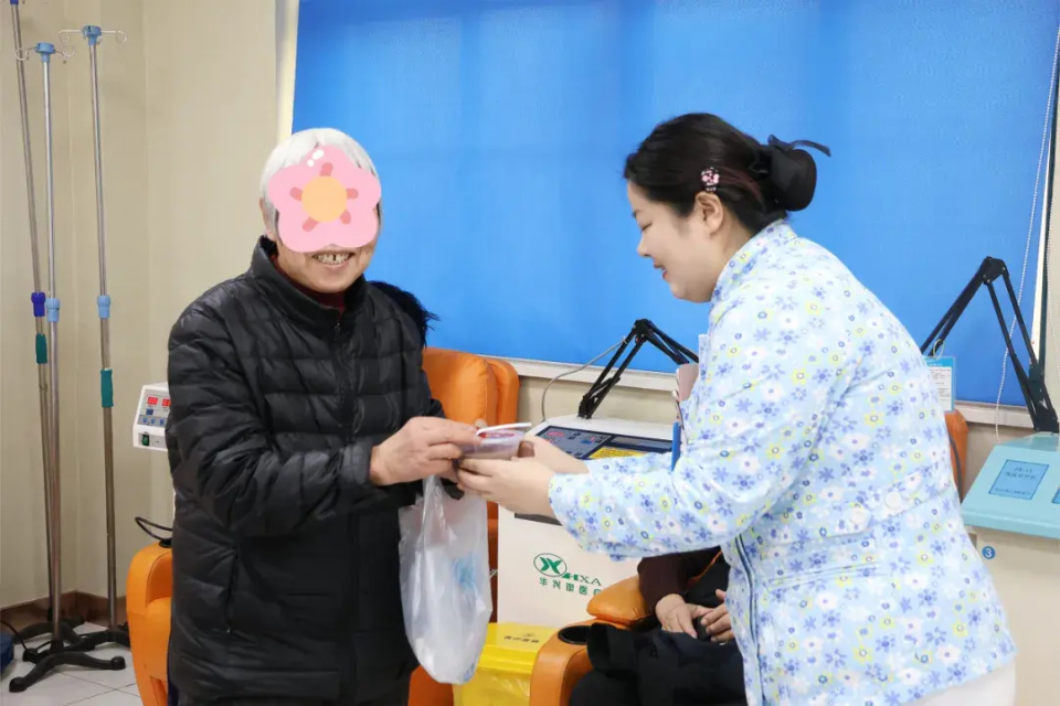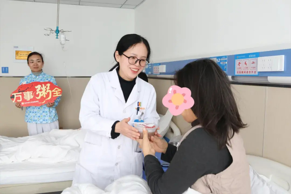 随后,医护人员又特意赶往二楼中西医结合治疗区,为那些冒着寒意前来就诊的患者送上热粥,让奔波求医的人们,也能感受到这份节日的专属温情。