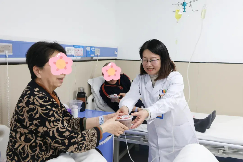 医疗院长钱江平带领医护团队,推着精心装饰的爱心餐车,穿梭在住院部的各个病房,亲手将热腾腾的腊八粥送至每一位患者及家属手中,“身体感觉怎么样?祝您早日康复,节日快乐!”医护人员一边递上粥,一边关切询问,热情“粥”到的服务,让这份节日的温暖更加浓厚。