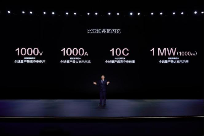 兆瓦闪充对充电桩也提出了更高要求。比亚迪集团执行副总裁、汽车工程研究院院长廉玉波表示:比亚迪自研的全球首款全液冷兆瓦闪充终端系统,其最大输出能力可以达到1360kW,未来将规划在全国各地建设4000多座“兆瓦闪充站”。除自建兆瓦闪充站外,比亚迪独创的“双枪充电”技术,可使超充桩秒变闪充桩,快充桩变超充桩;全球首创的“智能升压”充电技术,全面兼容公共快充桩,让用户桩桩都能充。