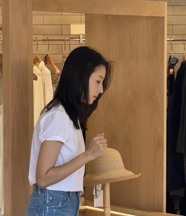 照片中的她穿着白T恤牛仔裤,虽然已经45岁,但素颜状态下的她,依旧漂亮年轻。