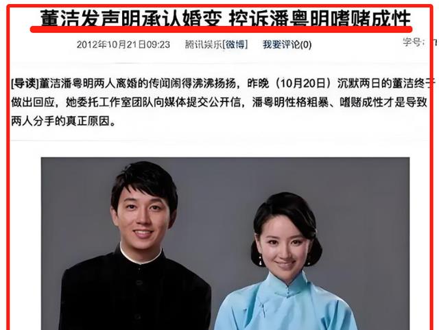 这时人们才明白,为什么2012年10月董洁会突然发布离婚声明,指控潘粤明嗜赌成性、粗暴无礼。