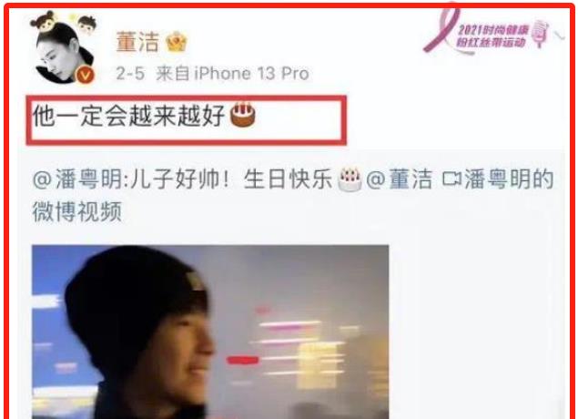 2023年2月5日,潘粤明发了一条儿子的生日视频,特意艾特了前妻董洁。