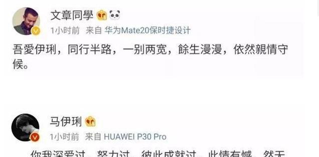 早在姚笛公布婚讯的时候,马伊琍也在同一时间发布了和文章离婚的消息。