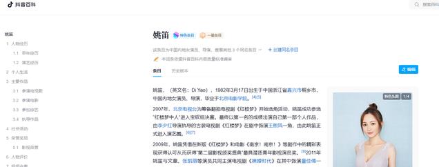 抖音百科——姚笛的个人资料