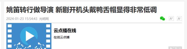 光明网——2024.01.23《姚笛转行做导演 新剧开机头戴鸭舌帽显得非常低调》