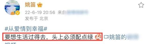 她在个人账号上,发了一条动态称“要想生活过得去,身上必须带点绿”。