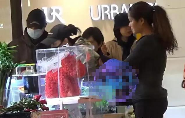 而他的司机则是拿着花跟在后面。