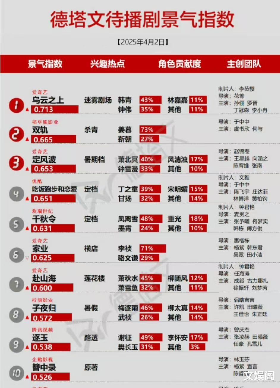 作为一部标榜着现实主义的刑侦推理片,《乌云之上》排名榜首,这部剧中充斥着尔虞我诈以及真心大英雄。孙俪、李小冉、丁冠森、罗晋等人的大名如雷贯耳,让故事流量内涵并存。