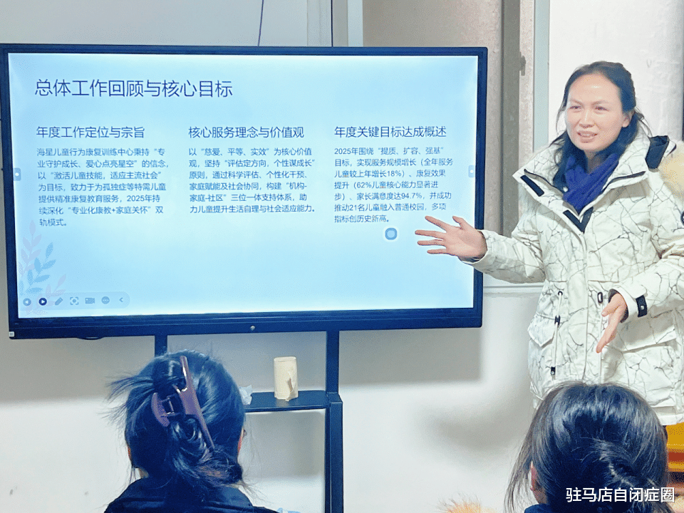 中心负责人、总督导刘明明首先对2025年度工作进行全面总结。过去一年,海星中心秉持“慈爱、平等、实效”的核心价值观,持续深化“专业化康教+家庭赋能”服务模式,取得了一系列扎实成果: