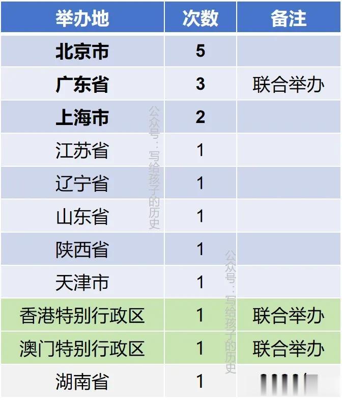其次是广东省,3次(含合办)。
