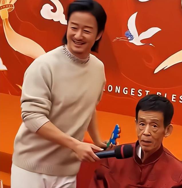 两个儿子吴滺和吴虑,一个忙着玩彩带,一个则贴心地扶着爷爷下台,这一幕祖孙情深的画面,让人倍感温暖。
