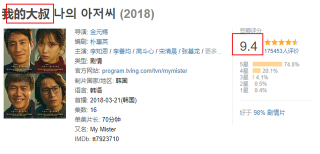 该剧播出之后,剧中的IU就给大家留下了深刻的印象,并且认为这是她所具有代表性的作品之一,豆瓣评分更是高达9.4分。