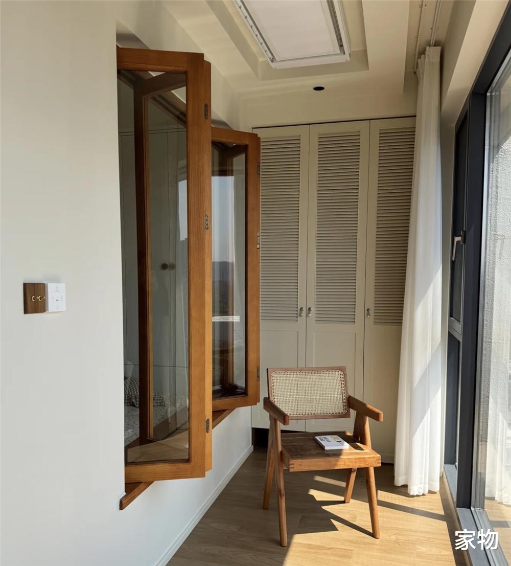 一家人在窗户和推拉门中间反复徘徊,最终却发现了一个更好的做法——折叠窗,不仅能实现客厅和阳台的互通,又能保留次卧室儿童房的完整性,还可以完全打开,进行通风换气,可谓是一举多得。