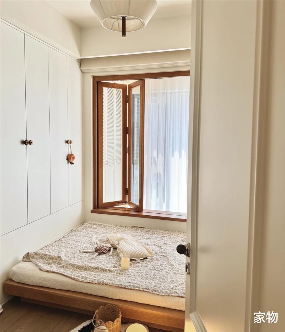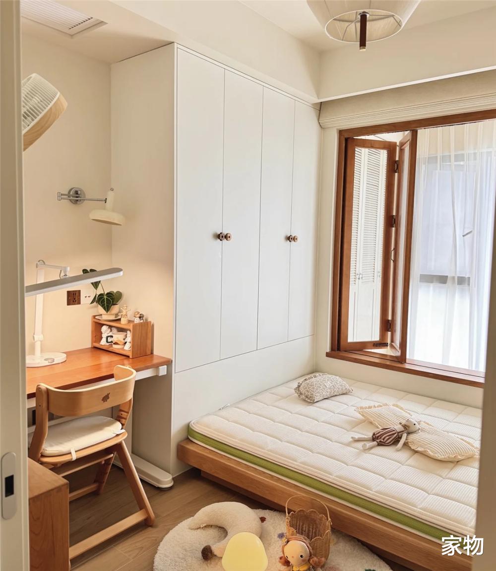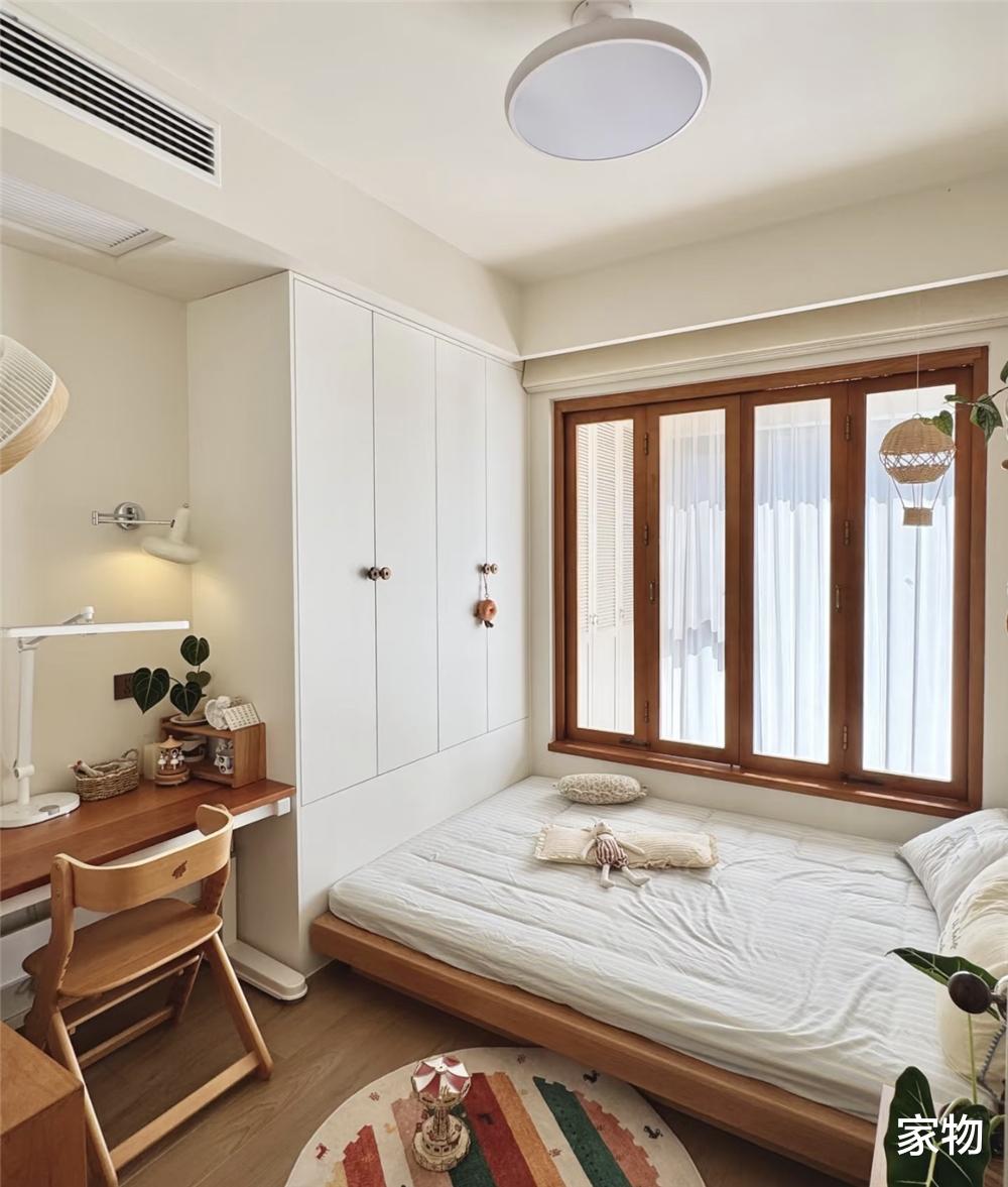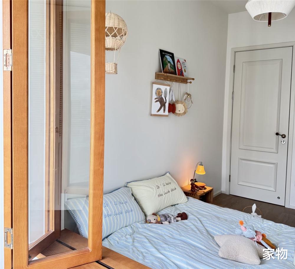 天气晴好的时候,阳光也能透过阳台的窗户再照进次卧室儿童房里,舒适性直接拉满,照到这窗户上,也显得格外温馨。