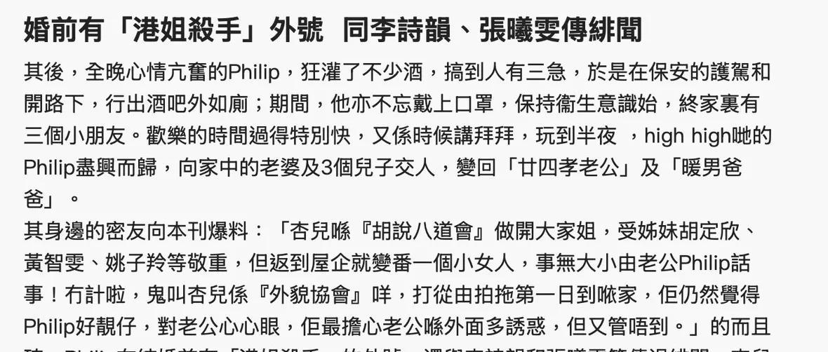 2024年3月香港兰桂坊的霓虹灯下,某夜店监控拍到的暧昧画面在社交平台引发核爆级讨论。胡杏儿丈夫李乘德与多名女子的亲密接触视频,像一记重锤砸碎了持续十年的"模范夫妻"人设。这场舆论风暴恰似现代婚姻困境的显微镜——在全民围观的社交媒体时代,我们的亲密关系正在经历怎样的异变?