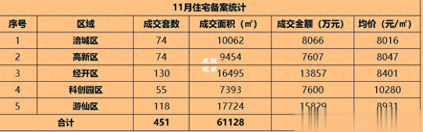 11月主城(不含安州)备案451套,备案5.3亿,均价8664元/㎡。
