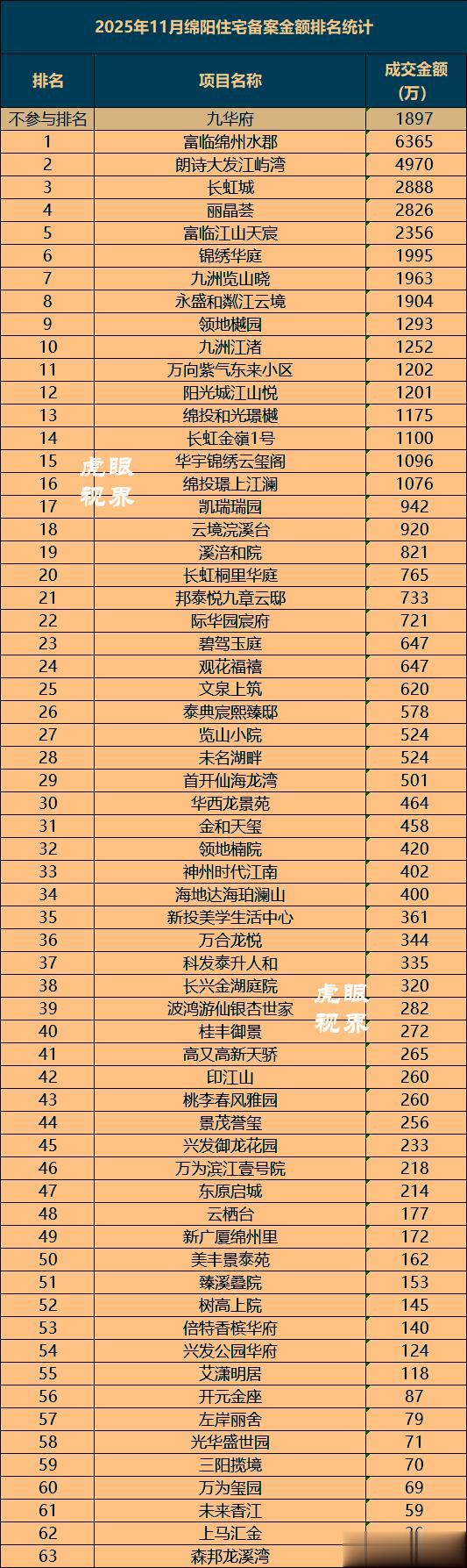 附3:11月绵阳主城63个楼盘销售金额排座次