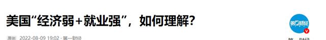 信息来源:第一财经2022年8月9日——美国“经济弱+就业强”,如何理解?