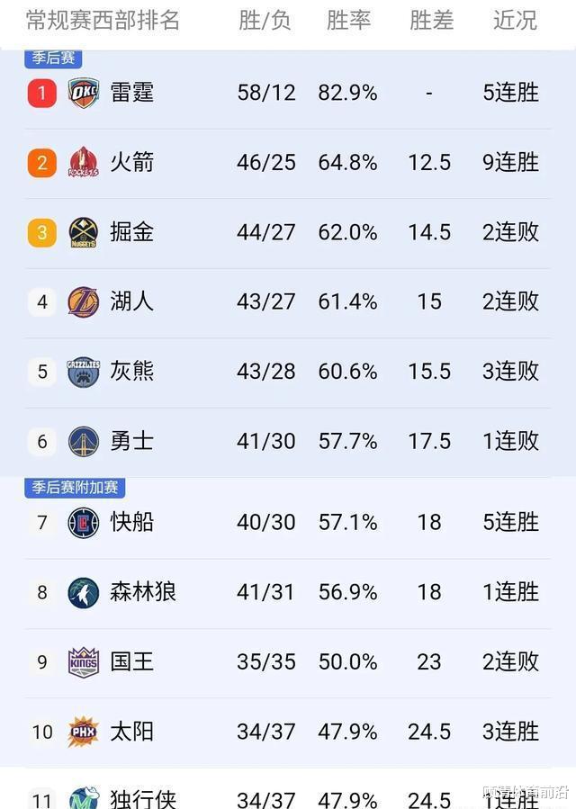 NBA常规赛打完几场,西区球队的战况已经出炉了。根据联盟官方发布的数据,各支球队的积分榜位置发生了这些变化: