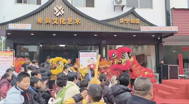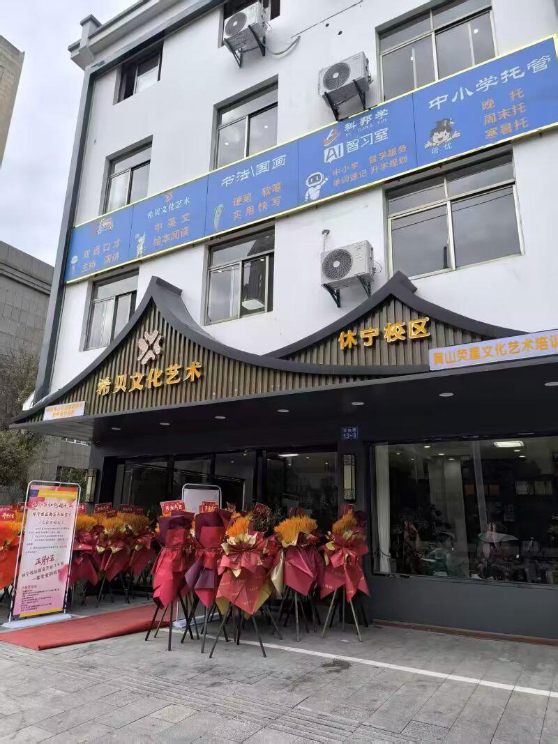 国宝级艺术家郭荣举现身该分校的开业仪式给该分校的开业增添了在文化艺术培训方面无上荣光和光彩,参加黄山希贝艺术休宁分校开业的还有央视主持人肖贵宁及张斐琪,中国好人、天润发超市董事长王鹏,黄山希贝艺术董事长高贝贝,希贝艺术休宁分校的董事长鲍红星及希贝艺术休宁分校的校长王连琴女士等学生家长近500人。