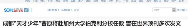 信息来源:四川在线 2023-11-27————成都“天才少年”曹原将赴加州大学伯克利分校任教 曾在世界顶刊多次发文