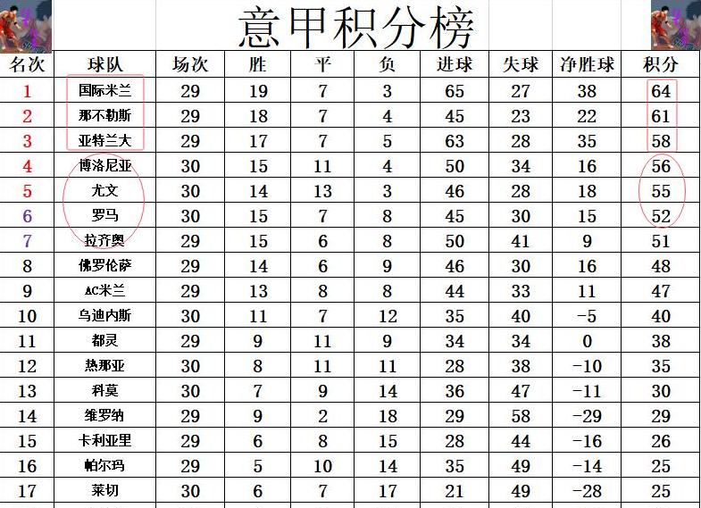 积分榜分析:国米领跑,争四战火激烈回到积分榜,意甲本赛季的争四战局显得尤为激烈。