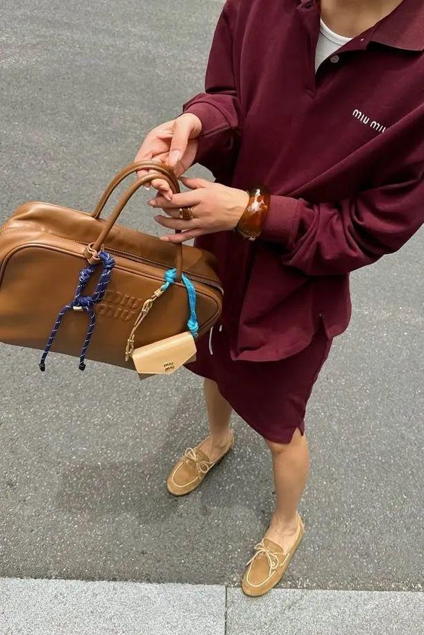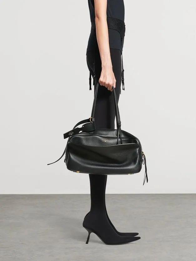 与此同时,Prada 在其中号 Re‑Nylon Bowling Bag 中,将轻盈环保的再生锦纶与经典小牛皮结合,使包体线条更柔和,同时保留了硬挺廓形,这种在材质和结构上的折中,正是当下「Soft Luxury 松弛奢华」美学的体现,令保龄球包在城市通勤与休闲出行间都具备吸引力。