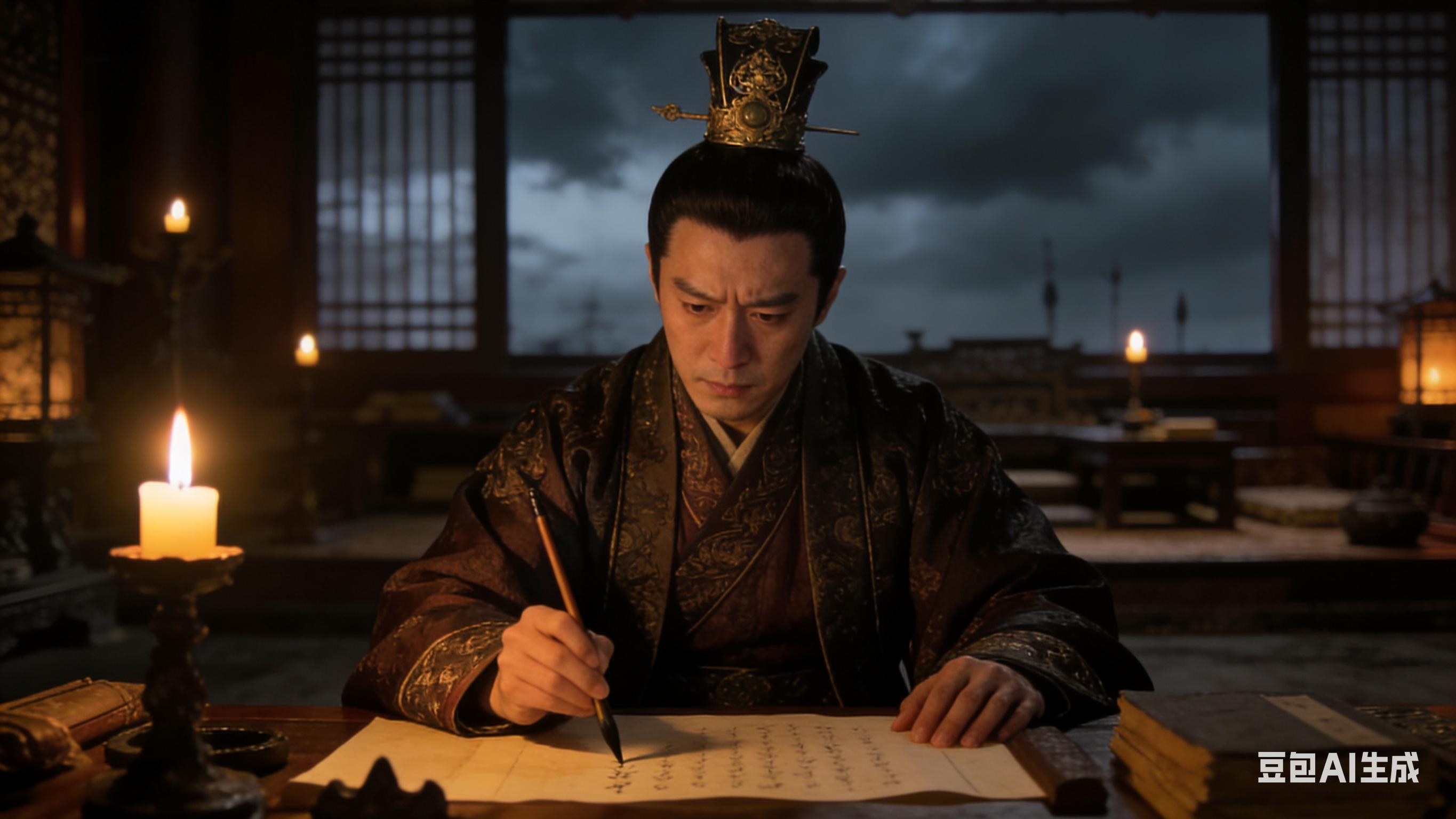 公元968年深冬,并州晋阳(今山西太原)的皇宫被凛冽北风裹得严严实实,雪沫子顺着宫墙缝隙往里钻,殿内只点了一盏昏暗的宫灯,映得床榻上的人影愈发单薄。四十三岁的刘钧半躺在床上,沙陀族与生俱来的硬朗轮廓,被十四年帝王生涯的忧惧磨得只剩消瘦,鬓边华发早生,眼窝深陷,眼底布满彻夜难眠的红血丝,唇色泛着病态的青白,连抬手的力气都近乎消散。他微微侧头,目光落在身旁的郭皇后身上,女子身着素色暗纹宫装,眉眼温婉柔和,指尖带着常年研墨、煎药的薄茧,正轻手轻脚为他掖好被角,动作轻缓得生怕惊扰了他。刘钧喉间哽咽,一滴清泪顺着眼角滑落,没入陈旧的枕巾,心里翻涌着无尽的屈辱、不甘与愧疚——他是北汉第二位皇帝,却一生背负“儿皇帝”的屈辱标签,在乱世夹缝中苟存,唯有身边这位结发妻子,陪他走过所有艰难岁月,给了他乱世里唯一的温情。郭皇后察觉到他的异动,停下动作,伸手轻轻抚上他的额头,声音柔得像晋阳春日的溪水:“陛下,胸口又闷痛了吗?妾再给您揉一揉。”刘钧费力地握住她微凉的手,力道轻得近乎颤抖,低声呢喃:“皇后,朕这一生,委屈你了……”