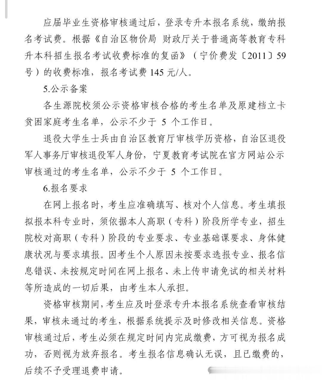 2026年宁夏专升本报名流程:报名流程分为获取考生号、网上填报信息、资格审查、网上缴费、公示备案5个步骤。2025年12月8日至12日2025年12月8日至12日