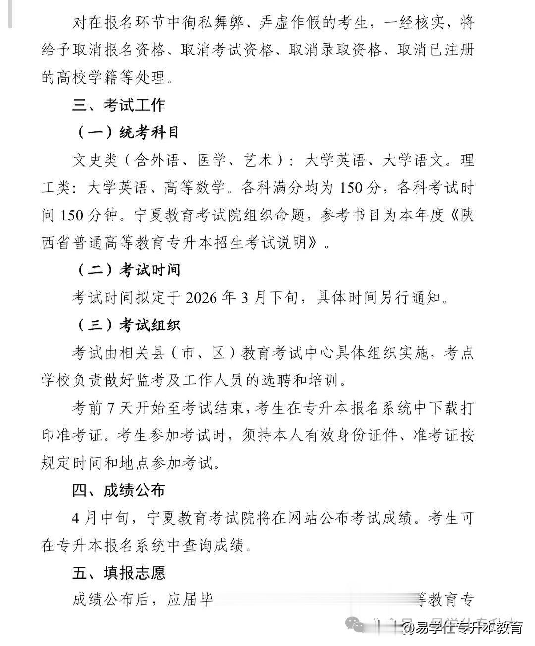 2026年宁夏专升本考试时间:考试时间拟定于2026年3月下旬,具体时间另行通知。